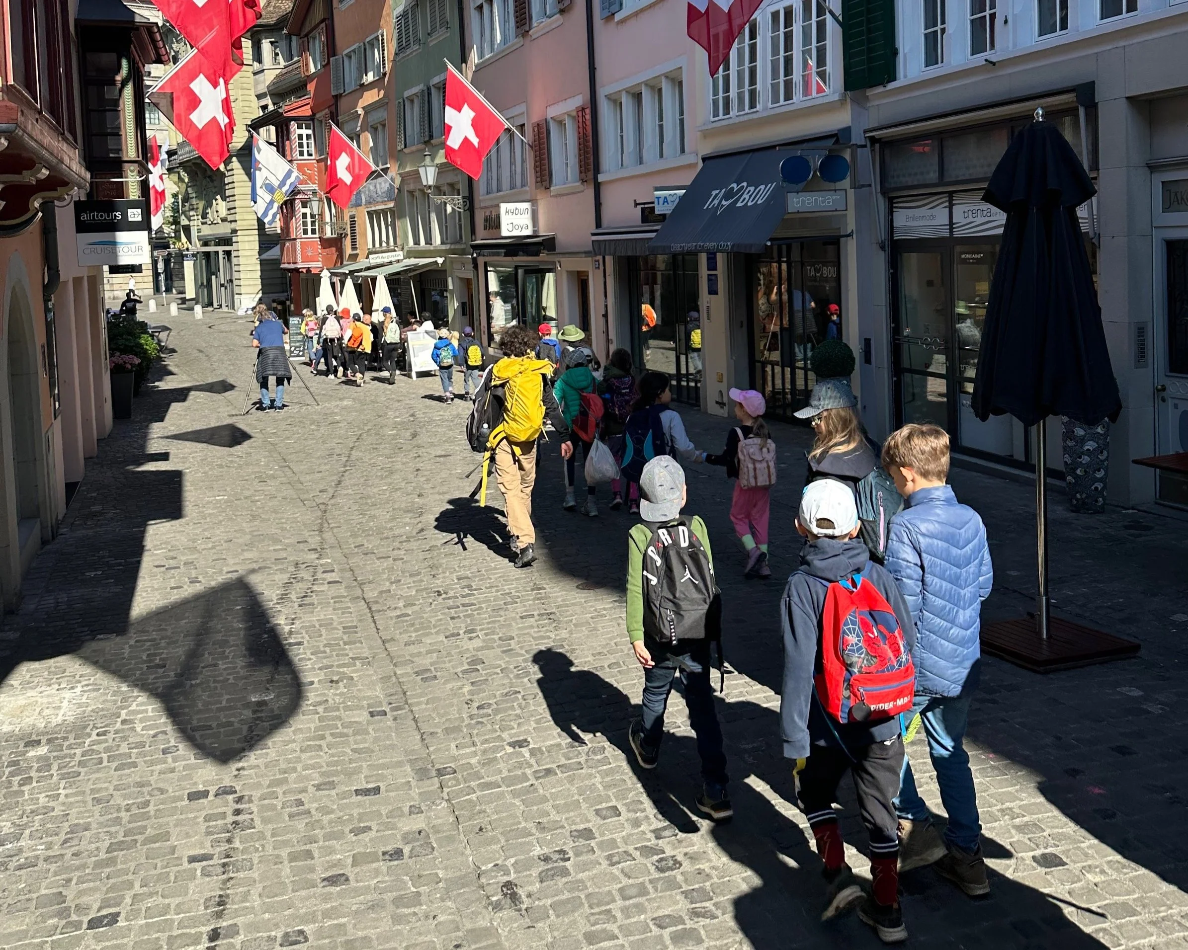 At the beginning of the academic year, the students embarked on a city walking tour that allowed them to explore and connect with the heart of Zurich. With an investigative worksheet in hand, they got to know the areas around Rennweg, Paradeplatz, Augustinerhof, and Lindenhof. As they took notes on their surroundings and learned about the rich history of central Zurich, many of them experienced outdoor learning for the very first time. It was a wonderful way to introduce them to the city’s culture and history while also fostering a sense of curiosity and adventure.